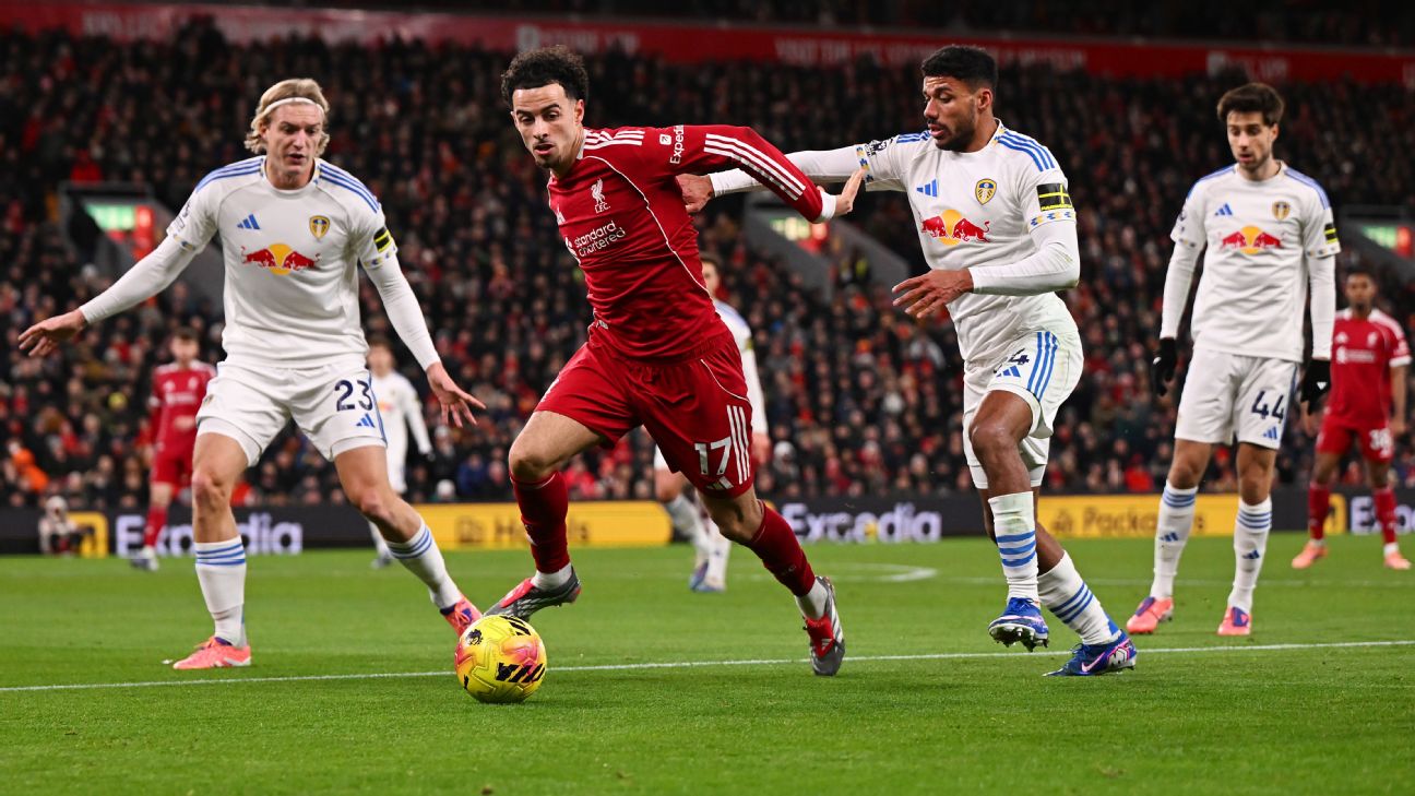- 10': Attempt saved. Hugo Ekitiké (Liverpool) left footed shot from the right side of the box is saved in the bottom right corner by Lucas Perri (Leeds United). Assisted by Curtis Jones.