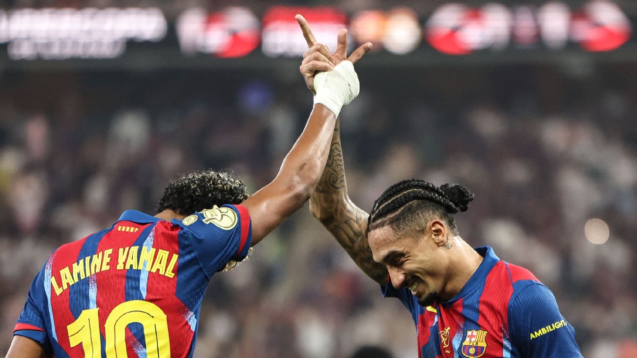 Raphinha leads Barcelona to Supercopa win over Madrid